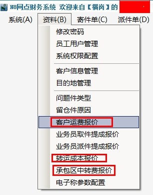 承包區(qū)中轉(zhuǎn)費(fèi):是網(wǎng)點(diǎn)向承包區(qū)(或業(yè)務(wù)員)收取的出貨費(fèi)。一般也是按快件重量和目的地,通過公式計(jì)算得到的(在F8系統(tǒng)里叫”承包區(qū)中轉(zhuǎn)費(fèi)維護(hù)“,F(xiàn)8系統(tǒng)能自動按報價計(jì)算,不同的目的地價格不同,不同的承包區(qū)價格可以不一樣)。